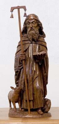 Dit kleinere, afgeloogde beeldje is meer gedrongen van vorm en laat diepe uitgesneden plooien zien. Beide beeldjes kunnen als goed lokaal werk uit de middeleeuwen gezien worden, waarbij het kleinste beeldje een iets oudere stijl vertegenwoordigt.