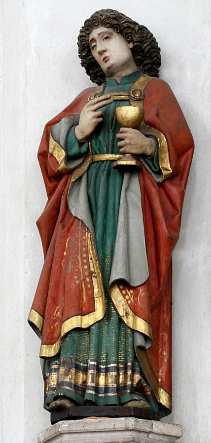 Dit beeld heeft op een altaar gestaan dat rond 1485 aan Johannes de Evangelist was toegewijd. In 1524 werd dit, bij de reorganisatie der altaren, ook toegewijd aan Hieronymus, Fabianus en Sebastianus. De beelden van Hieronymus en Fabianus zijn spoorloos verdwenen, maar van Sebastianus weten we dat het eind negentiende eeuw is verkocht en dat het nu in het Museum voor Schone Kunsten in Gent (België) staat. Beide beelden hebben karakteristieke stilistische overeenkomsten, wat vooral blijkt uit beider gelaatstrekken en haardos. Zij zijn waarschijnlijk van een en dezelfde kunstenaar.