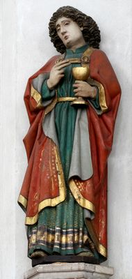 Dit beeld van Johannes van de hand van meester Arnt, behoort niet tot de serie apostelbeelden die in het schip van de kerk tegen de pilaren staan.