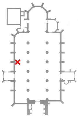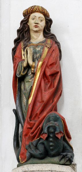 De heilige Margaretha staat hier op een op zijn rug liggend monster met een grote kop, haar handen in gebed gevouwen. De stijl waarin het beeld is vormgegeven, wijkt af van de andere oude heiligenbeelden in de kerk. De beweeglijke houding, een danspas gelijkend, de drukke hoekige plooival van vooral de mantel, de wild golvende haren en daarbij de enigszins verwrongen gelaatstrekken geven het beeld een afzonderlijke individualiteit.