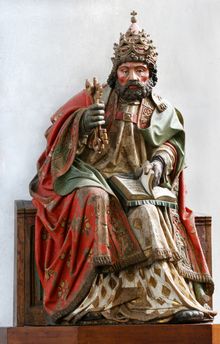 Het beeld van Petrus, hier afgebeeld als paus, is het indrukwekkendste object in de kerk.