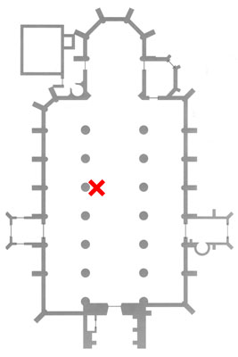 In zijn uitgestoken linkerhand heeft hij een boek en rechts draagt hij een groot (Romeins) kruis (kruisstaf). De neogotische polychromie is van J.L. Kusters (1886). De kruisstaf is van na de 2e W.O.