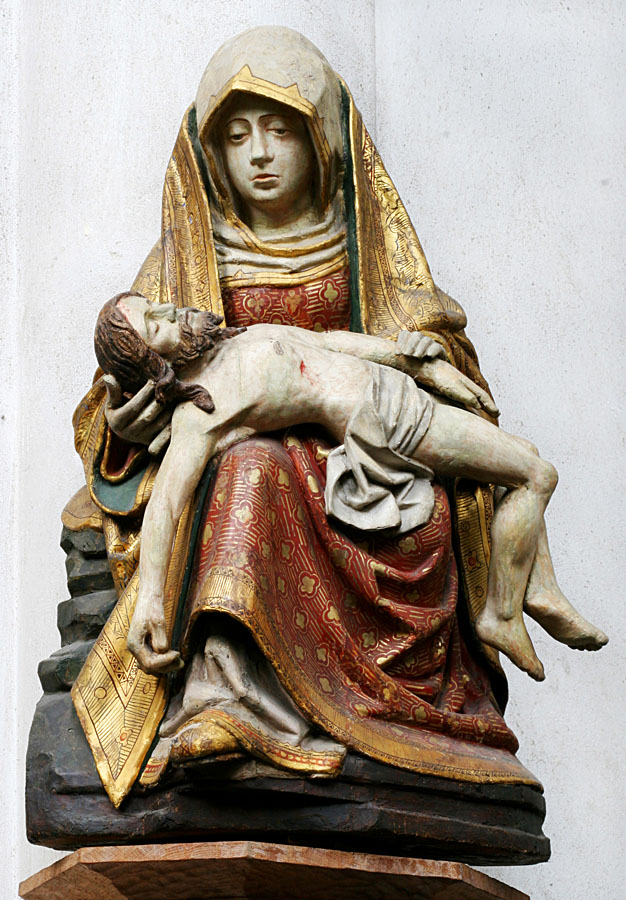 Het beeld van de Piëta is, evenals de Christus op de Koude Steen, een in de late middeleeuwen veel voorkomend devotiebeeld, dat de toeschouwer uitnodigt om het lijden van Christus te overwegen. Het stelt het niet-bijbelse moment voor waarop Maria het dode lichaam van haar zoon na de kruisafname op haar schoot heeft genomen.